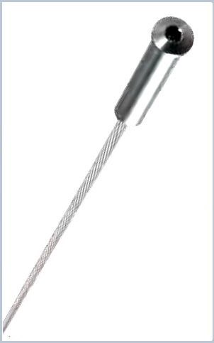 Slide the Invisiware® receiver into a pre-drilled hole in the end post. The inside of the receiver is female-threaded to accept the male-threaded swaging stud (below) that is attached to the cable. The head of the receiver is broached for an Allen wrench. To tension the cable, simply insert the Allen wrench and rotate the receiver around the male threads to draw the stud and cable further inside the receiver. When installed,