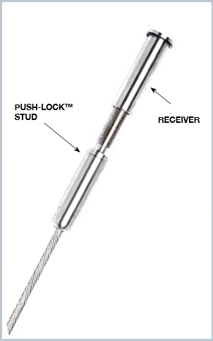 No field swaging Similar to our Invisiware® receivers but when used with Push-Lock studs there is no need to swage the threaded stud onto the cable. Receivers with Push-Lock swageless studs can be used with any fitting on the other end, but when used with our other swageless fittings, both ends can be put on the cable by hand without any swaging or special tools.